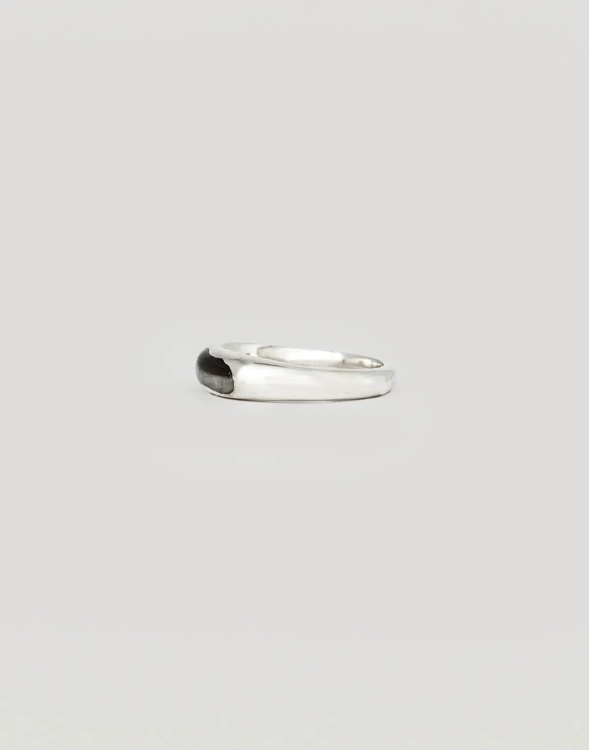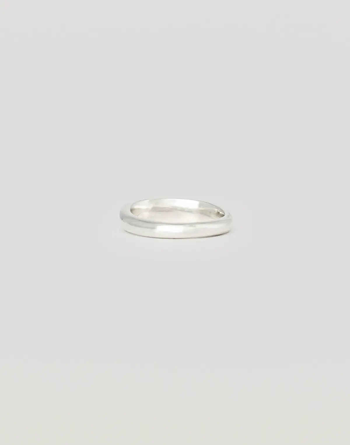 シンプルでデイリーに使いやすいミニマルなデザインのリングです。リング全体はなめらかなカーブを描き、指にしっくりと馴染むフィット感があります。